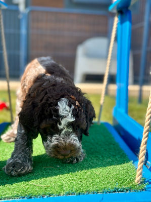 The puppies were born via emergency C-section at the Supervet hospital due to complications during labor. The litter consists of one brown roan male, one brown roan female, and one white and brown female Lagotto puppy. During the surgery, Florence also had to be spayed, but despite the major procedure, she is already doing well and is taking beautiful care of her puppies.