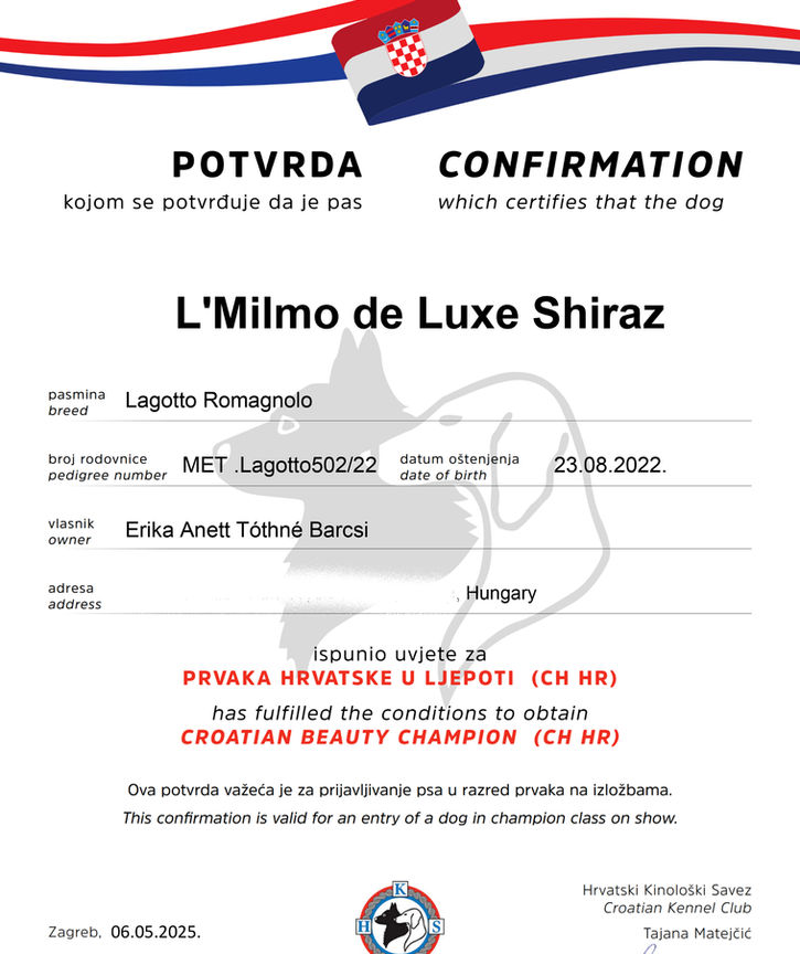 03.05.2025 Zadar Cacib III., exc. 1. ,CAC, r.CACIB judge: Tina Sterguljc (SI)